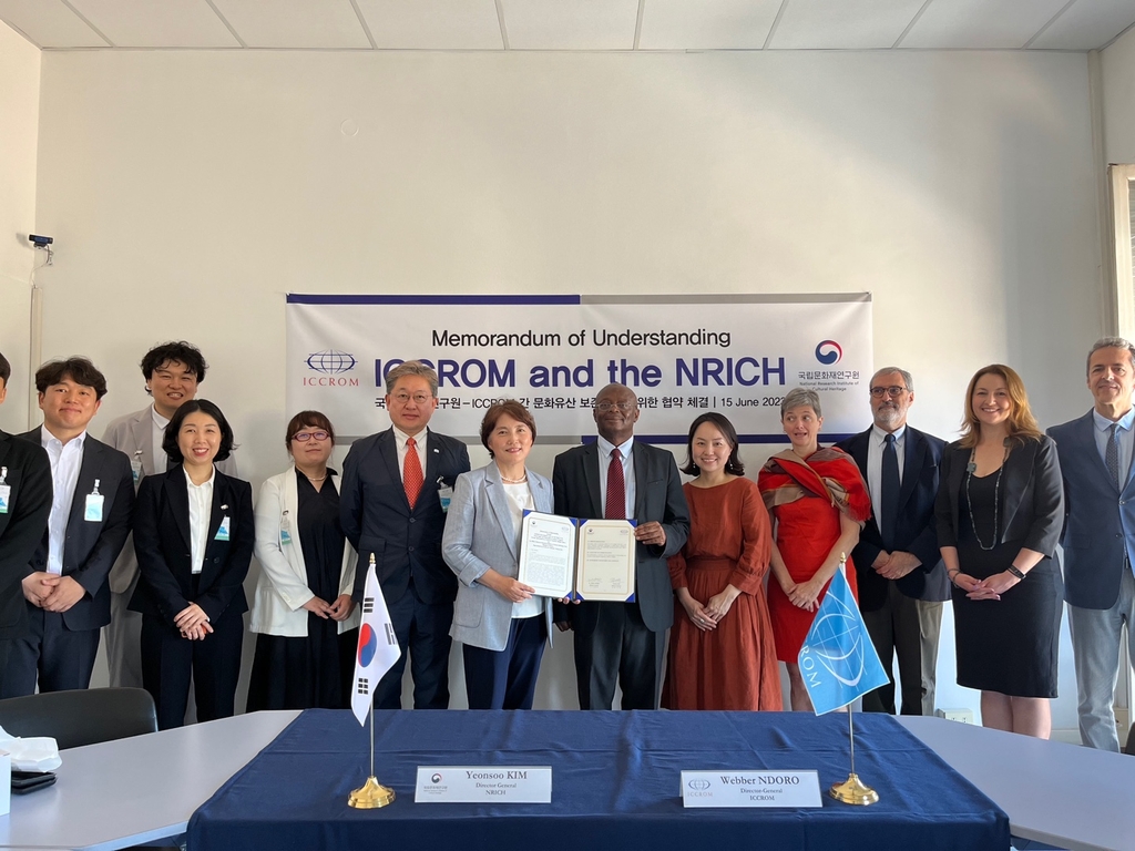 (서울=연합뉴스) 김예나 기자 = 국립문화재연구원은 국제문화재보존복구연구센터(ICCROM·이크롬)와 문화유산 보존 관리를 위한 업무협약을 체결했다고 16일 밝혔다.