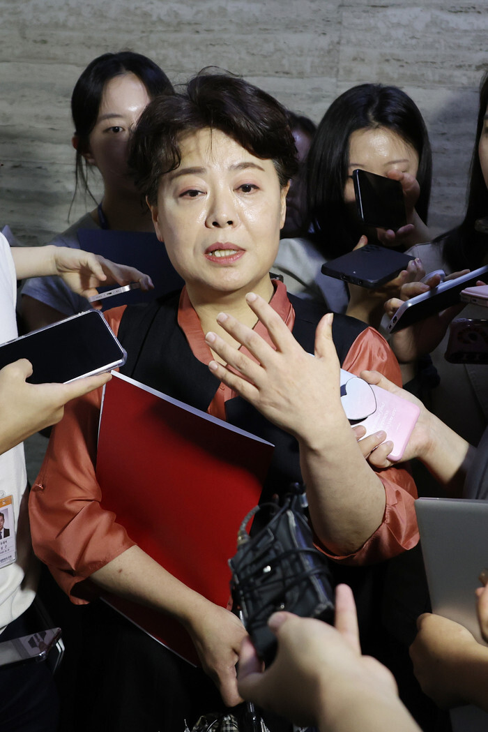 Yun Hee-suk, chair of the reform committee at the main opposition People Power Party, speaks to reporters after attending a meeting of the party's emergency leadership committee at the National Assembly in Seoul on July 17, 2025. (Yonhap)