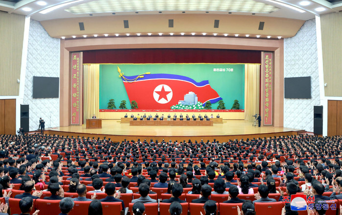 North Korean people attend a national meeting at the People's Palace of Culture in Pyongyang on May 25, 2025, to commemorate the 70th founding anniversary of Chongryon, a Tokyo-based pro-Pyongyang association of Korean residents in Japan, in this photo released by the North's official Korean Central News Agency the next day. (For Use Only in the Republic of Korea. No Redistribution) (Yonhap)