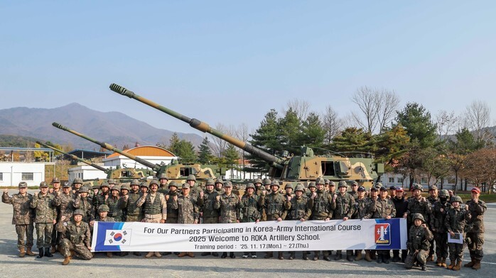 Soldiers from South Korea's defense cooperation countries attend the Army's international course on Korean weapons system in this photo released by the Army on Nov. 27, 2025. The program began on Nov. 12. (PHOTO NOT FOR SALE) (Yonhap)