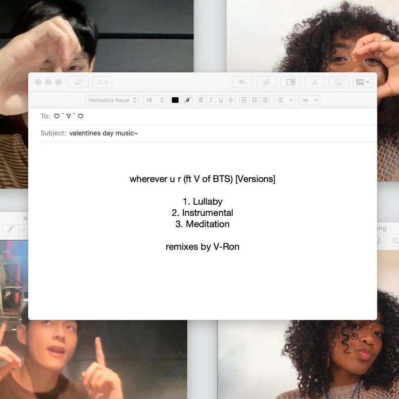 "뷔가 제 음악을 인스타그램에 공유했고, 저는 메시지를 보내기로 결심했어요. 너무 떨렸지만 함께 음악을 만들고 싶냐고 물었고, 그는 '네'라고 답했어요. 문자를 통해 곡 작업을 했는데 정말 놀라운 경험이었죠."