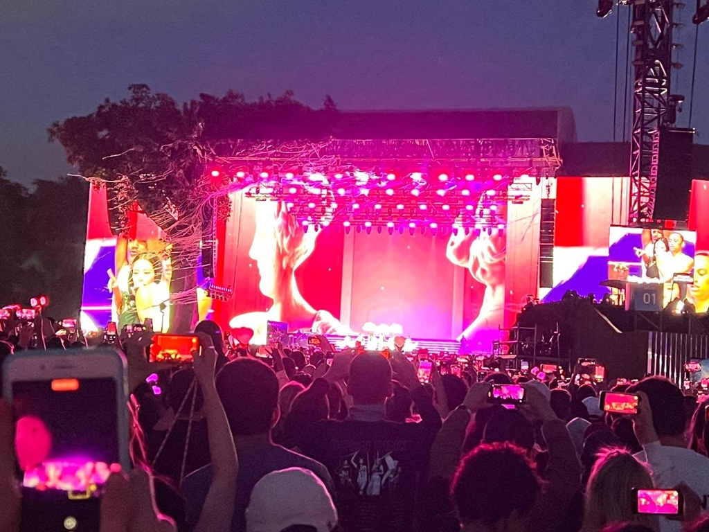 곡이 연주되자 팬들은 빽빽하게 선 와중에도 몸을 흔들고 하트가 달린 분홍색 응원봉을 흔들었다.