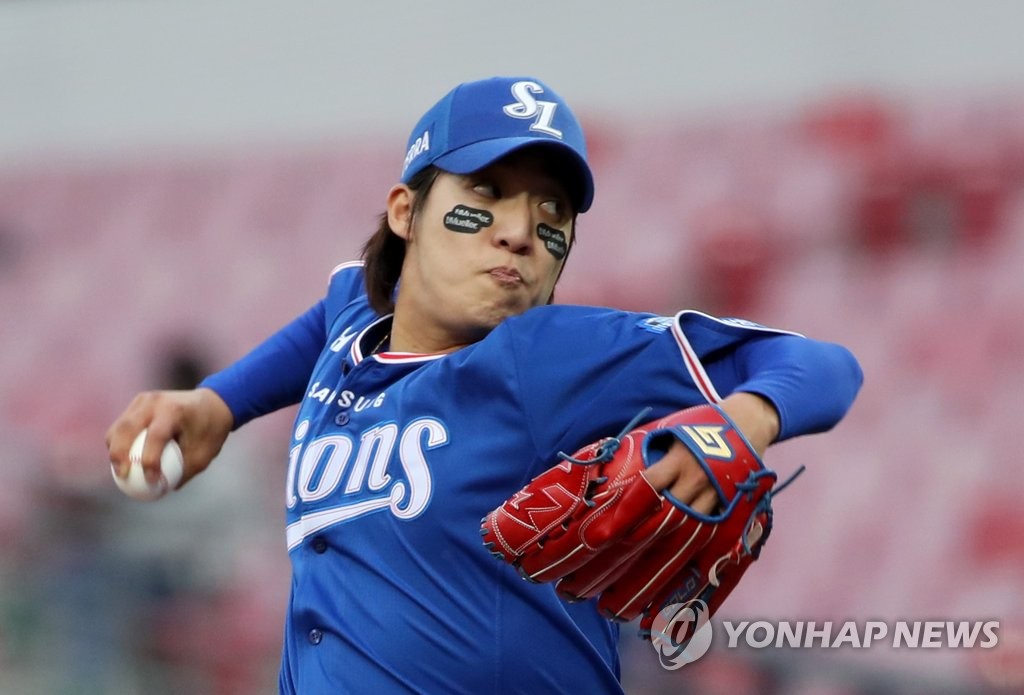| ▲ In this file photo from April 24, 2021, Won Tae-in of the Samsung Lions pitches against the Kia Tigers in the bottom of the fifth inning of a Korea Baseball Organization regular season game at Gwangju-Kia Champions Field in Gwangju, 330 kilometers southeast of Seoul. (Yonhap) |