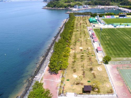 현재 잔디 보수작업이 진행 중이고 산책로를 이용하는 군민들의 안전을 위해 경계 부분에 펜스를 설치하는 등 시설 보완 작업을 진행 중이다.