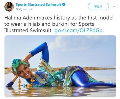 | ▲ '부르키니' 차림으로 미국 스포츠지 표지모델로 등장한 할리마 에이든 [스포츠 일러스트레이티드 트위터 캡처·재판매 및 DB 금지] |