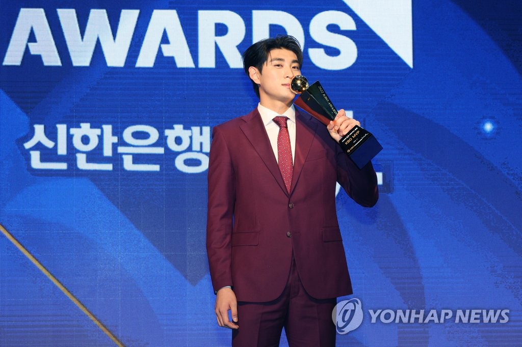 | ▲ In this file photo from Nov. 17, 2022, Kiwoom Heroes outfielder Lee Jung-hoo kisses a trophy after winning the most valuable player award in the Korea Baseball Organization at the awards ceremony in Seoul. (Yonhap) |
