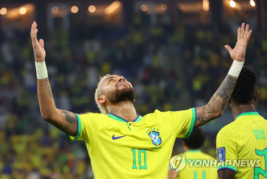 | ▲ 환호하는 네이마르 (도하=연합뉴스) 김주성 기자 = 6일(한국시간) 카타르 도하 974스타디움에서 열린 2022 카타르 월드컵 16강전 대한민국과 브라질의 경기. 부상에서 복귀한 네이마르가 페널티킥을 성공한 뒤 환호하고 있다. 2022.12.6 utzza@yna.co.kr |