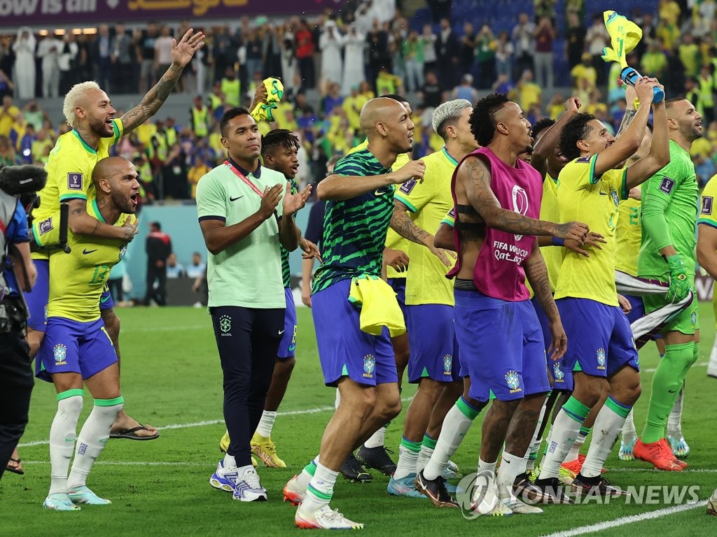 | ▲ 8강 진출에 환호하는 네이마르 (도하=연합뉴스) 임헌정 기자 = 6일 오전(한국시간) 카타르 도하 974 스타디움에서 열린 2022 카타르 월드컵 16강전 한국과 브라질 경기. 4-1 승리를 거둬 8강 진출에 성공한 브라질 네이마르(왼쪽) 등 선수들이 기뻐하고 있다. 2022.12.6 kane@yna.co.kr |