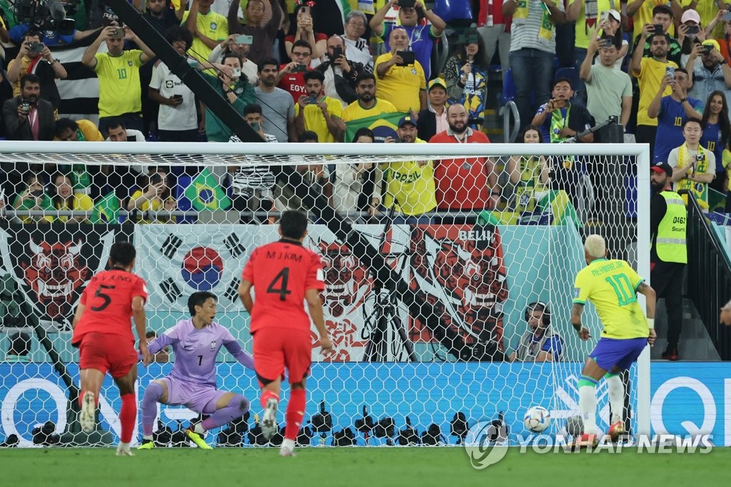 | ▲ 페널티킥 성공하는 네이마르 (도하=연합뉴스) 김주성 기자 = 6일(한국시간) 카타르 도하 974스타디움에서 열린 2022 카타르 월드컵 16강전 대한민국과 브라질의 경기. 부상에서 복귀한 네이마르가 페널티킥을 성공하고 있다. 2022.12.6 utzza@yna.co.kr |