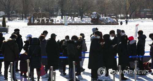 | ▲ People line up to take coronavirus tests at a pop-up screening clinic in World Cup Park in downtown Seoul on Dec. 19, 2021. (Yonhap) |