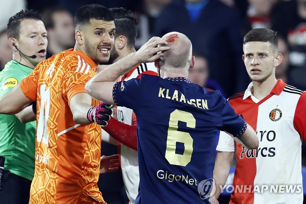 | ▲ 이달 초 아약스와 페예노르트의 경기에서 머리에 라이터를 맞은 클라선 [AFP=연합뉴스 자료사진. 재판매 및 DB금지] |