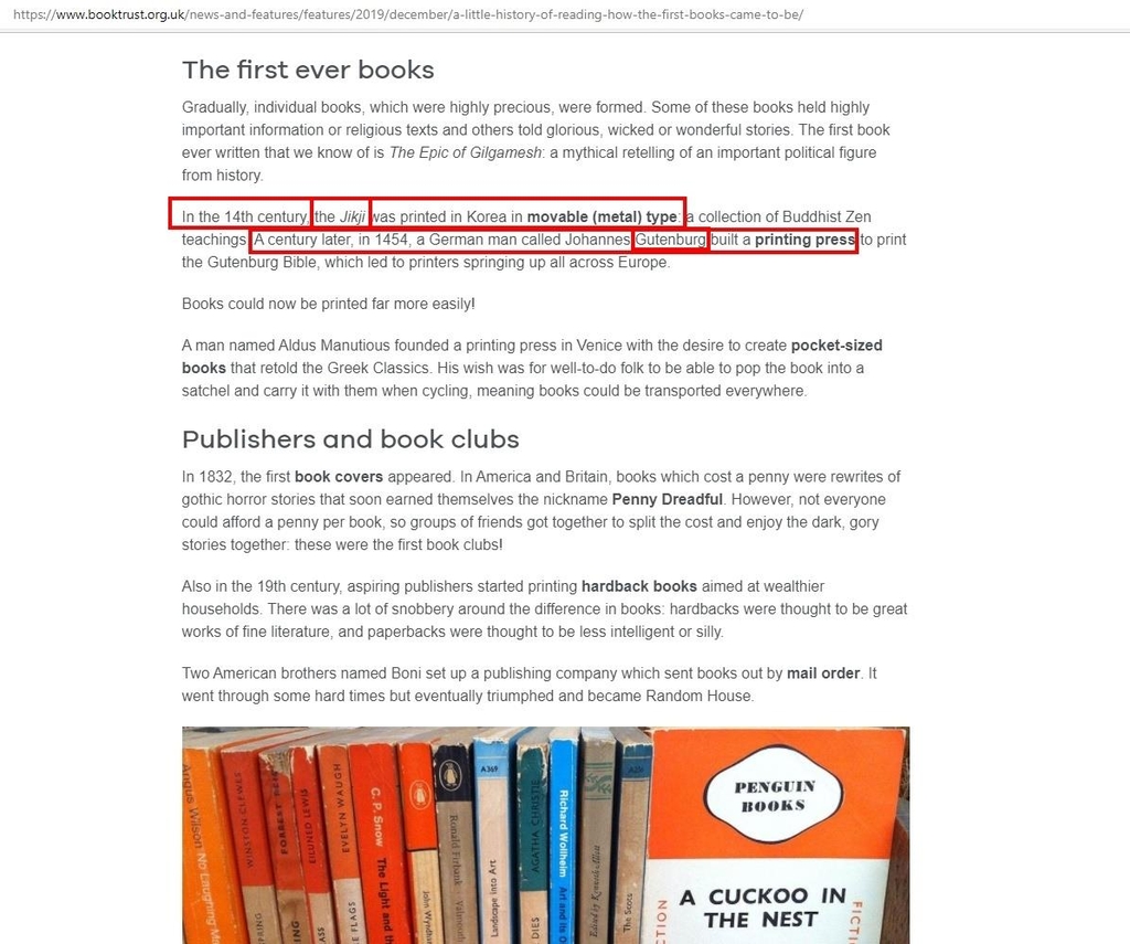 (서울=연합뉴스) 왕길환 기자 = 영국 어린이 독서 운동 단체인 '북 트러스트' 사이트(booktrust.org.uk)에 유네스코 세계기록유산인 세계 최고(最古) 금속활자본 '직지심체요절(직지)' 내용이 등재됐다.