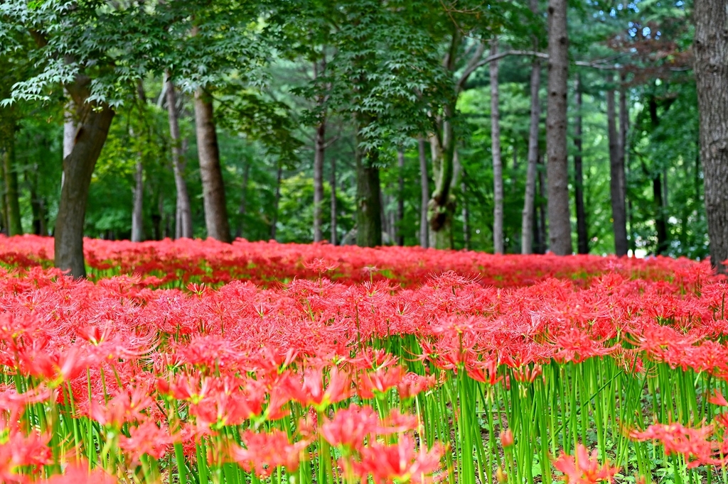 이후 해마다 9월이면 피어나는 꽃무릇이 붉은 융단을 깔아놓은 듯한 장관을 이룬다.
