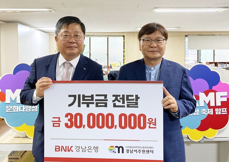 박상호 여신영업본부 상무는 "이주민과 지역민이 함께 어우러지는 맘프 축제가 성공적으로 개최될 수 있게 기부금을 마련했다"며 "경남은행은 앞으로도 이주민과 외국인 노동자들이 대한민국에 안정적으로 정착할 수 있도록 지속해 관심을 가져나갈 것"이라고 말했다.