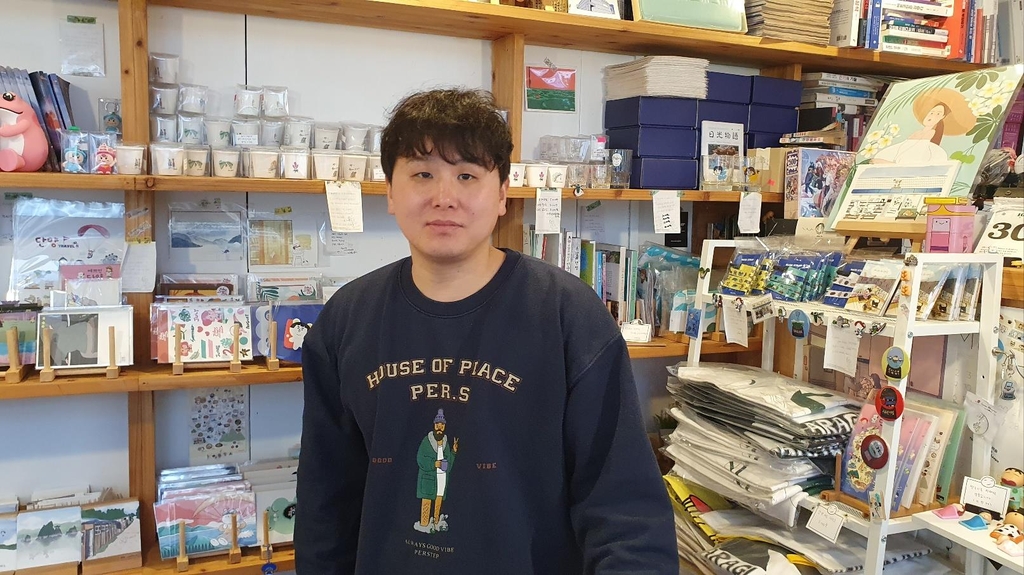 9평 남짓 좁은 매장에는 그림엽서, 포스터, 메모지, 포스트잇, 배지, 마그넷, 돗자리, 안경 닦이, 미니 화병, 술잔, 마스크 줄, 일회용 필름 카메라 등 100여개 품목이 빼곡히 진열돼 있다.