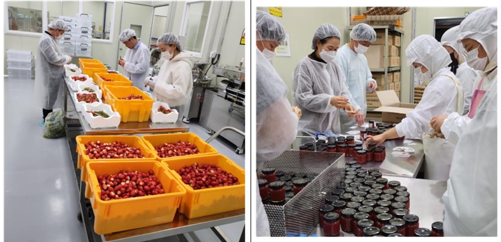 | ▲ 홍보용 딸기잼 생산 모습 [천안시 제공. 재판매 및 DB 금지] |