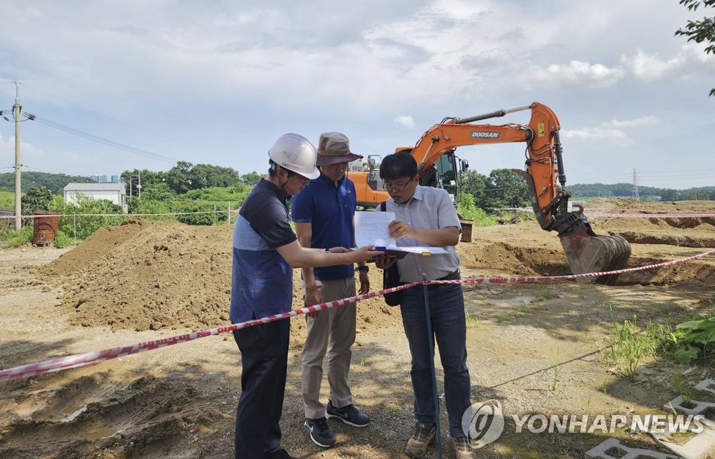 | ▲ 문화재청, 매장유산 발굴현장 33곳 점검 (서울=연합뉴스) 문화재청이 긴 장마 속에 지반이 약해지거나 안전사고가 우려되는 매장유산 발굴 현장 33곳을 이달 11일까지 긴급 점검한다고 3일 밝혔다. 사진은 관계자들이 경기 오산 근린생활시설 및 단독주택부지 내 유적 발굴 조사 현장을 점검하는 모습. 2023.8.3 [문화재청 제공. 재판매 및 DB 금지] photo@yna.co.kr |