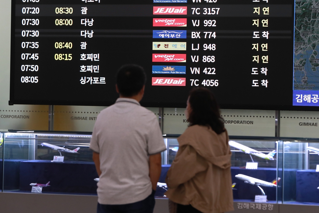 괌 현지 시설 복구 늦어져 김해공항 1시간 지연 도착