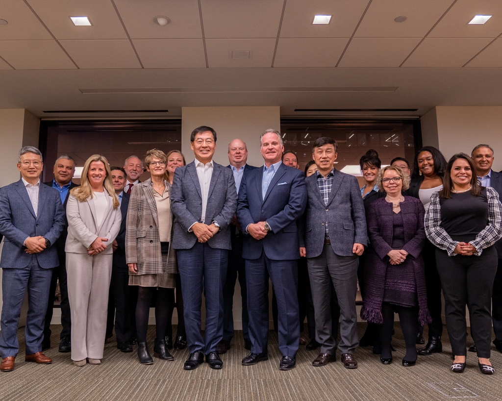 | ▲ This undated photo provided by LG Chem shows its CEO Shin Hak-cheol (4th from L), AVEO Pharmaceuticals CEO Michael Bailey (4th from R) and other officials from the two companies. (PHOTO NOT FOR SALE) (Yonhap) |