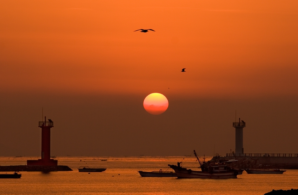 마량진항은 포구가 바다로 길게 뻗어 나와 해넘이와 해돋이를 모두 감상할 수 있는 곳이다.