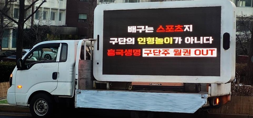 | ▲ 여자프로배구 흥국생명의 '월권 논란'을 비판하는 팬들 [여자배구행복기원단 제공. 재판매 및 DB금지] |