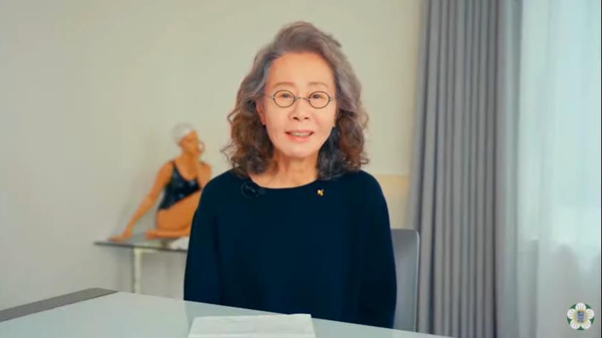 | ▲ 윤여정, 이화여고 '자랑스러운 이화인상' 수상 [이화여고 135주년 창립기념식 생중계 캡처. 재판매 및 DB 금지] |