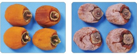 | ▲ 국산 곶감(왼쪽)과 중국산 곶감 (서울=연합뉴스) 국산은 과육에 탄력이 있고 밝은 주황색으로 꼭지가 동그란 모양으로 깎여 있다. 중국산은 과육이 딱딱하거나 물렁하고 탁한 주황색을 띠며 꼭지가 네모난 모양으로 깎여 있다. 2021.2.1 [농식품부 제공. 재판매 및 DB 금지] |