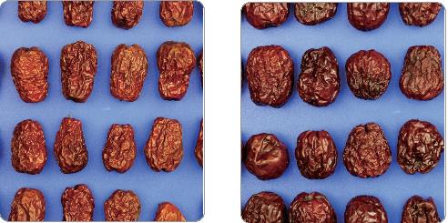 | ▲ 국산 대추(왼쪽)와 중국산 대추 (서울=연합뉴스) 국산은 윤택이 나며 알이 굵고 속껍질이 두꺼워 잘 벗겨지지 않는다. 중국산은 윤택이 거의 없으며 알이 작고 속껍질이 얇아 잘 벗겨진다. 2021.2.1 [농림축산식품부 제공. 재판매 및 DB 금지] |