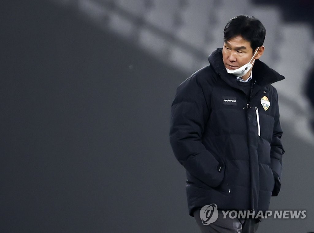 | ▲ In this file photo from Nov. 28, 2021, Gangwon FC head coach Choi Yong-soo reacts to his club's scoreless draw against FC Seoul in a K League 1 match at Jamsil Olympic Stadium in Seoul. (Yonhap) |