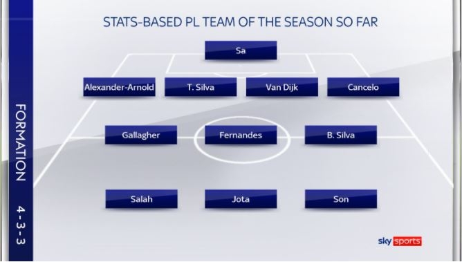 미드필더에는 베르나르두 실바(맨체스터 시티), 브루누 페르난데스(맨체스터 유나이티드), 코너 갤러거(크리스털 팰리스)가, 수비진에는 주앙 칸셀루(맨체스터 시티), 버질 판 데이크(리버풀), 치아구 시우바(첼시), 알렉산더-아널드가 포진했다.