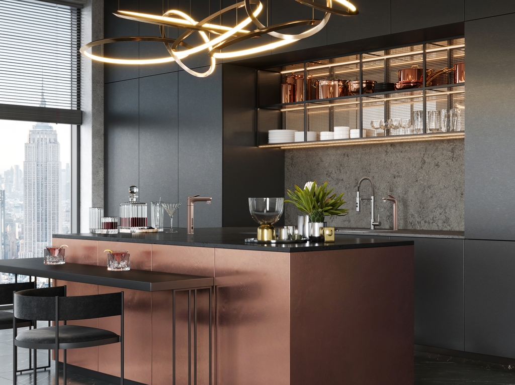 각 모듈은 싱크대 아래 설치 공간에 맞춰 아래위로 또는 양옆으로 유연하게 조합할 수 있다. 출수부(파우셋·Faucet)만 외부로 노출해 공간 효율성을 높인다.