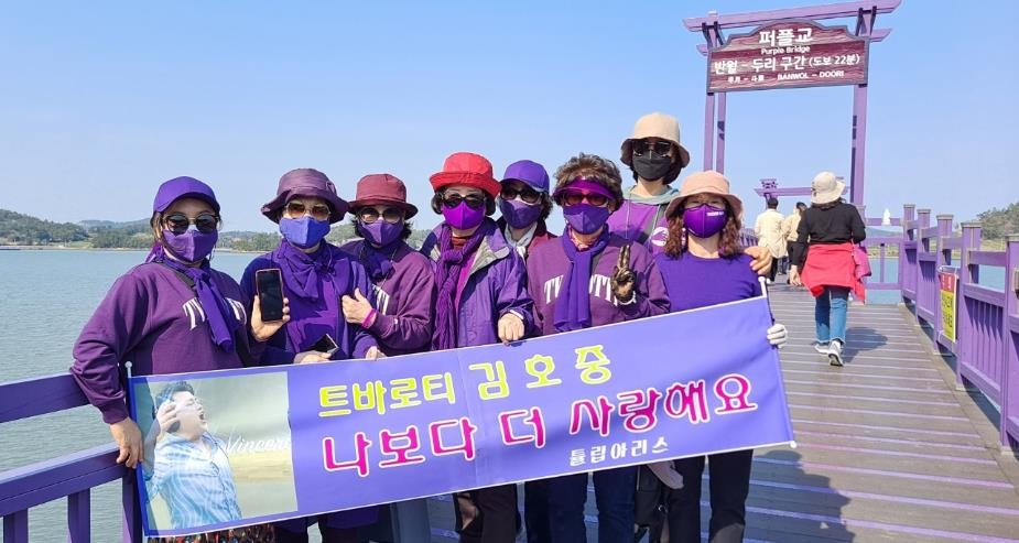 | ▲ 보라색 옷 입은 단체 방문객 [신안군 제공·재판매 및 DB 금지] |
