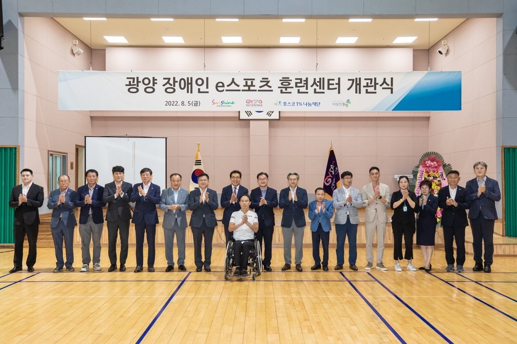 (서울=연합뉴스) 박상돈 기자 = 포스코1%나눔재단은 최근 광양국민체육센터에 장애인 e스포츠 훈련시설을 구축하고 개관식을 열었다고 8일 밝혔다.