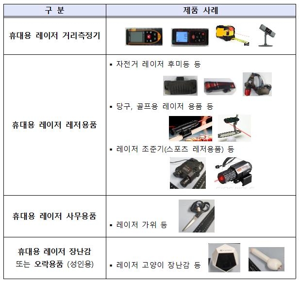 | ▲ 적용 범위에 추가된 휴대용 레이저 용품 사례 [국표원 제공. 재판매 및 DB 금지] |