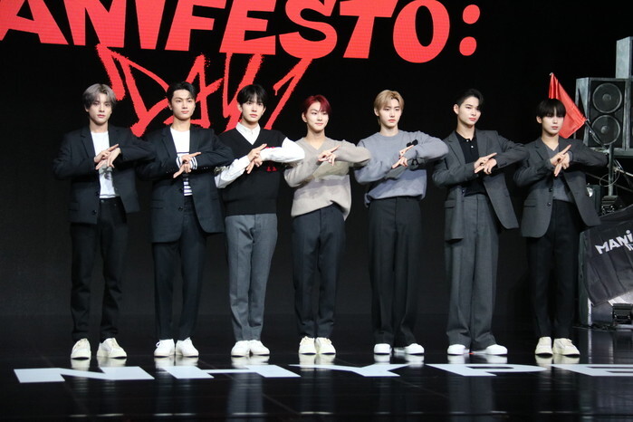 South Korean boy group Enhypen poses for a photo during a showcase for the group's third mini album "Manifesto: Day 1'" in Seoul on July 4, 2022. (Yonhap)