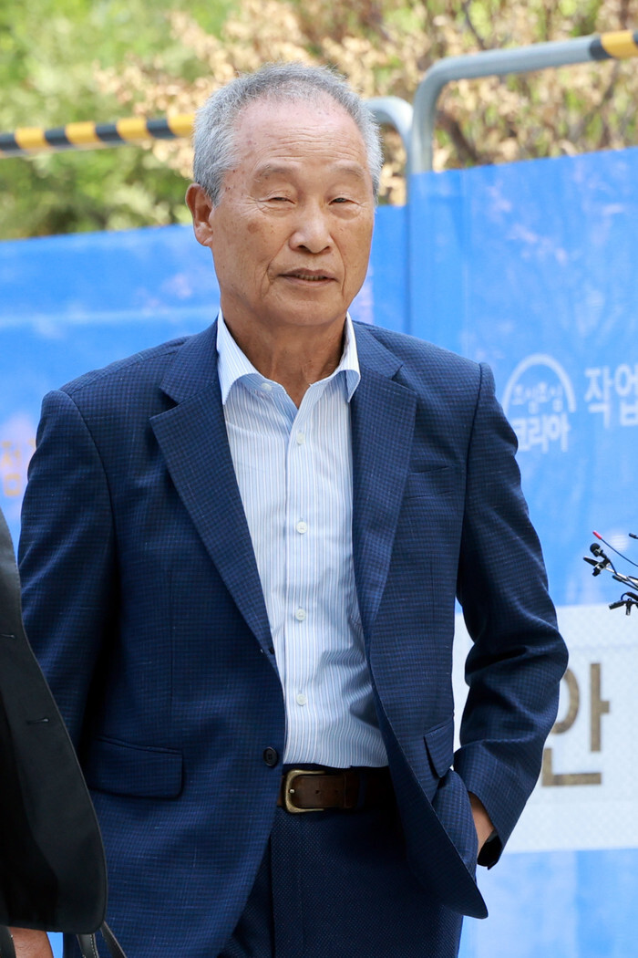 Cho Sung-ok, former head of Sambu Construction Co., appears at the office of a special counsel team in Seoul on July 10, 2025, to be questioned by the team as part of a probe into stock price manipulation allegations involving Kim Keon Hee, wife of former President Yoon Suk Yeol. (Yonhap)