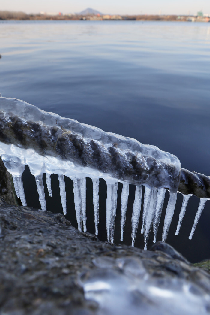 Icicles hang from a rope over the estuary of the Han River in Goyang, just northwest of Seoul, on Jan. 20, 2026, as South Korea is hit by cold weather, with the mercury falling to an intraday low of minus 13 C in the capital. (Yonhap)
