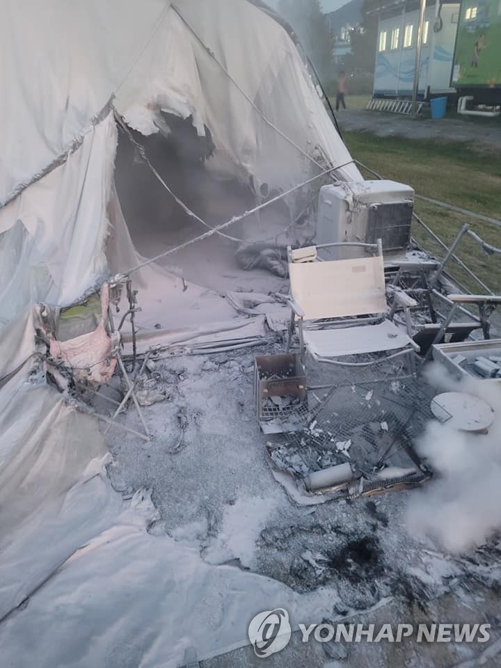 텐트 내부에 화로가 타고 있었던 것으로 봐서 아마 화로에서 불이 붙은 것으로 보였다.