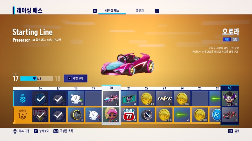 | ▲ 확률 대신 진행 단계에 따라 보상을 얻는 카트라이더: 드리프트의 '레이싱 패스' [카트라이더: 드리프트 캡처] |