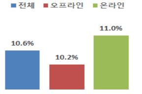 이 중 오프라인 매출이 7조100억원으로 10.2% 늘었고, 온라인 매출이 6조5천900억원으로 11.0% 증가했다. 오프라인 매출 비중이 51.6%, 온라인이 48.4%였다.
