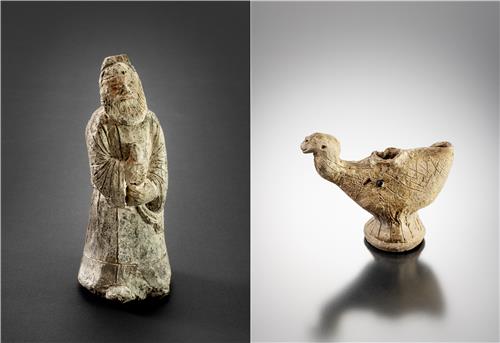 | ▲ 서역인 흙인형(왼쪽)과 낙타 모양 토기 [국립경주박물관 제공. 재판매 및 DB 금지] |