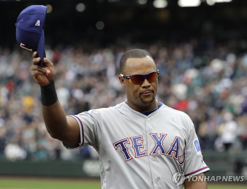 (서울=연합뉴스) 장현구 기자 = 아드리안 벨트레가 미국프로야구(MLB) 텍사스 레인저스 로고를 달고 미국 야구 명예의 전당에 입회한다.
