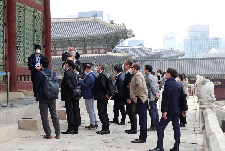 | ▲ 일본여행업협회(JATA) 관계자들이 경복궁을 둘러보고 있다.[한국관광공사 제공] |