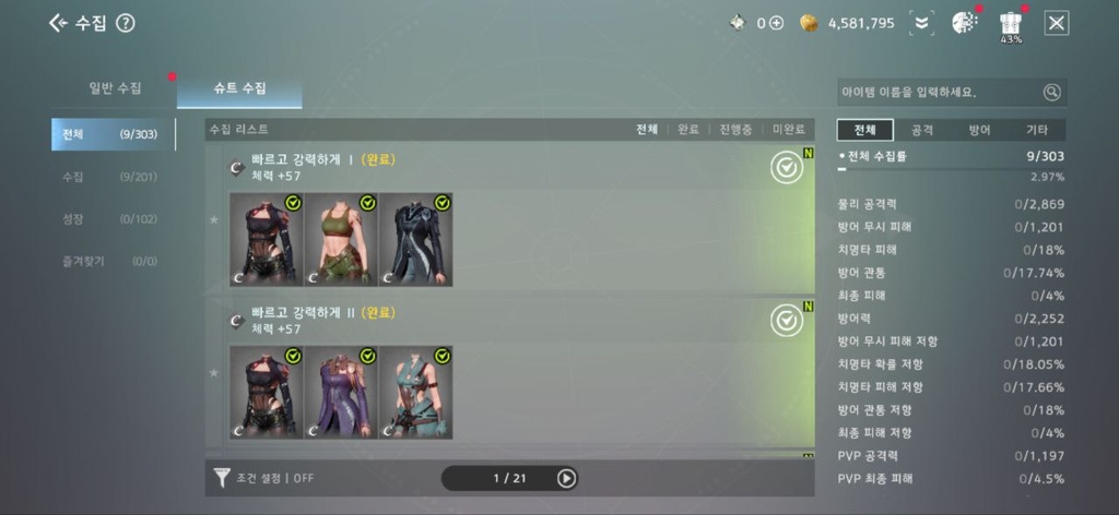 | ▲ 슈트를 모을수록 캐릭터 성능이 올라가는 '아레스'의 수집 시스템 [게임 화면 캡처. 재판매 및 DB 금지] |
