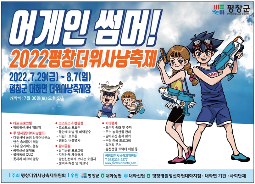 평창군은 더위사냥축제와 오대천물놀이축제를 오는 29일 동시에 개최한다고 5일 밝혔다.