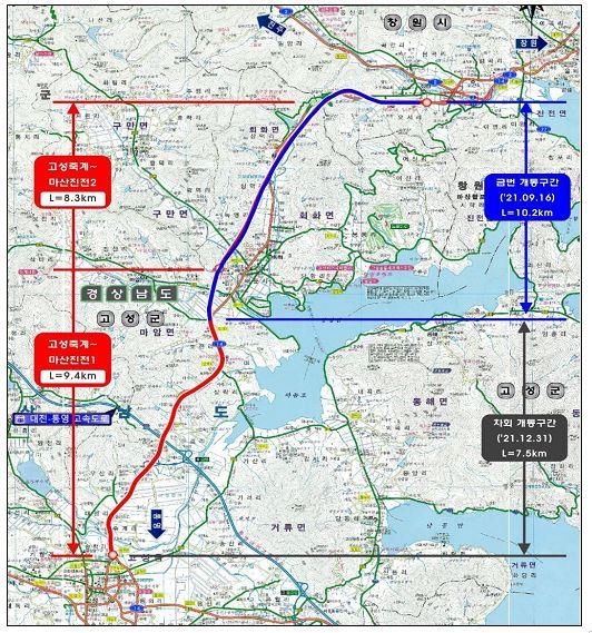 또 본 사업의 잔여 구간(고성군 고성읍∼마암면·7.5㎞)도 연말 개통을 목표로 공사가 진행되고 있다.