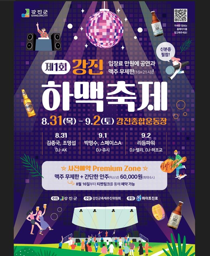 강진종합운동장에서 개최될 하맥축제는 오직 강진에서만 맛볼 수 있는 '하멜촌 맥주'와 지역의 촌닭으로 만든 치킨이 어우러진 치맥축제다.