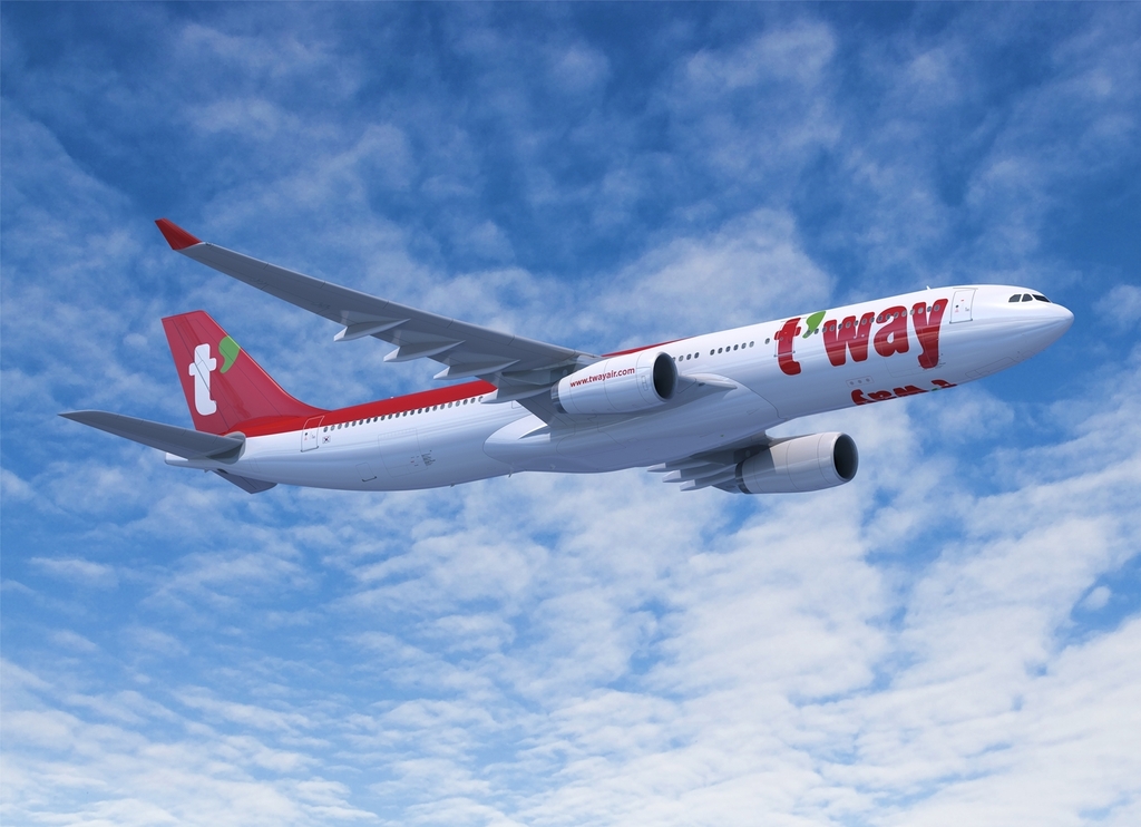 T'way will use an A330-300 on the Singapore route and provide two flights a week beginning May 28, the company said in a statement.