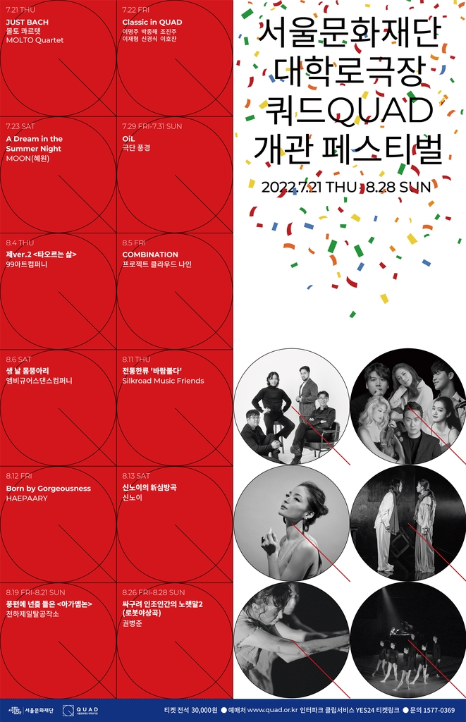 대학로극장 쿼드는 20일 개관식을 열고 21일부터 8월 28일까지 6주간 개관 페스티벌을 이어간다.