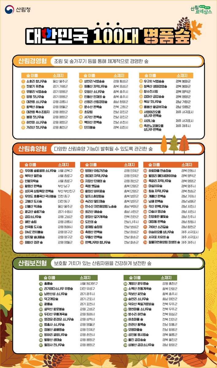 | ▲ 대한민국 100대 명품 숲 [산림청 제공. 재판매 및 DB 금지] |